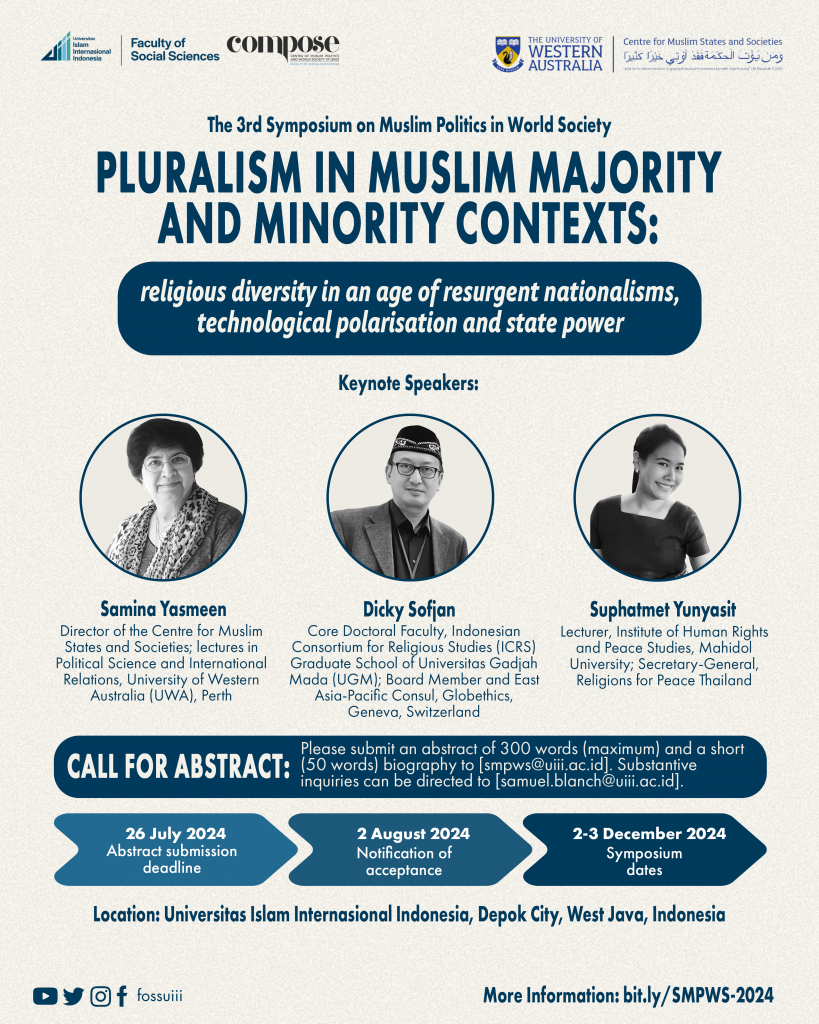 - Please submit an abstract of 300 words (max) and a short (50 word) biography to smpws@uiii.ac.id. Substantive inquiries can be directed to samuel.blanch@uiii.ac.id.
